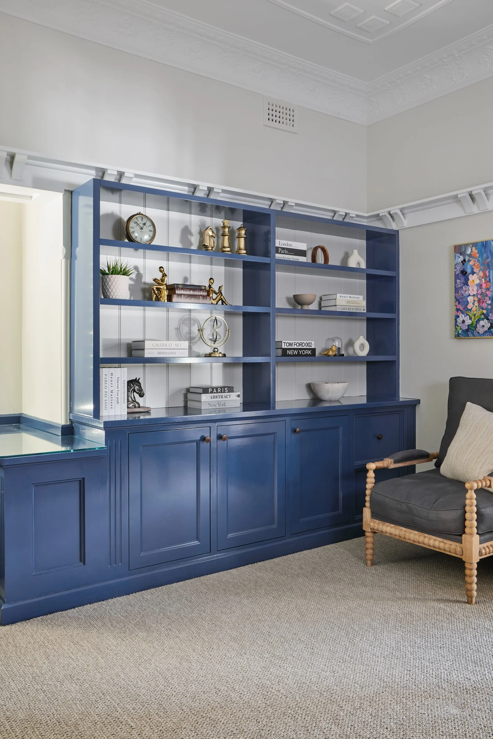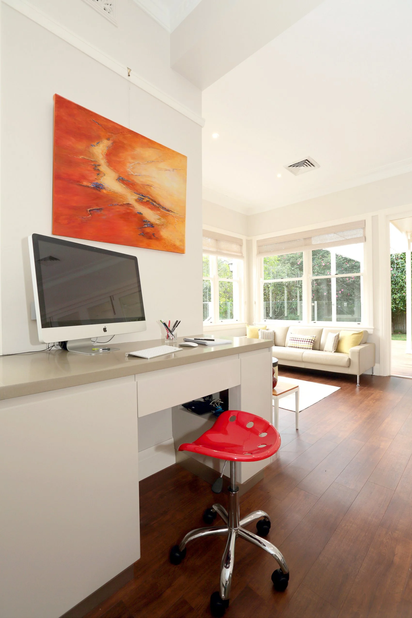 A productive home office does not need to be white. In fact, many “safe” neutrals can feel cold or bland, especially in strong Sydney light. Colour can help define the space and create the mood you need.